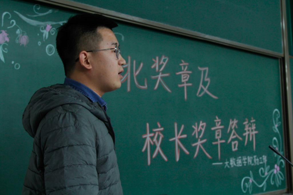 校长奖章答辩有3人参加,在主持人介绍了答辩要求和规则后,参加答辩的同学开始了自我展示与现场答辩。每个同学在有规定的时间内分别从学习情况,竞赛活动,创新创业等各个方面展示了自己最出色的一面。整个答辩过程中答辩人员激情澎湃,博得了在座老师与同学的阵阵掌声。