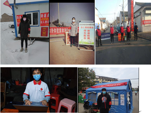 39位同学积极参与所在地区疫情防控的志愿者工作,为疫情防控献出自己的一份力。他们深入基层一线,利用空闲时间协助当地防疫站开展疫情防控知识宣传、疫情咨询及指引、倡导健康文明生活方式等工作,走街串巷呼吁大家尽量不要出门,出门要戴口罩。开展村、镇与社区门岗执勤,对进出的人员进行人体测温与出入登记,在劝返点对外来人员进行劝返。