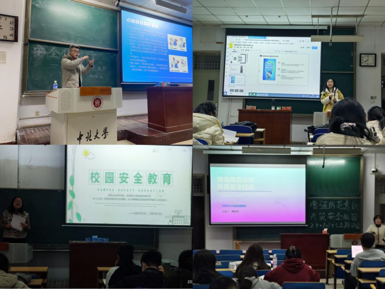 本学期以来海角社区 组织了以“增强防范意识 共建安全校园”为主题的系列班会。各班级通过讨论、知识竞赛、案例分析等形式,深入探讨了校园安全的重要性。班会不仅覆盖了消防安全、网络安全、人身安全、财产安全等传统领域,还特别强调了心理健康和实验室安全。通过主题班会,学生们对安全知识有了更全面的认识,也为后续的安全教育活动打下了坚实的基础。