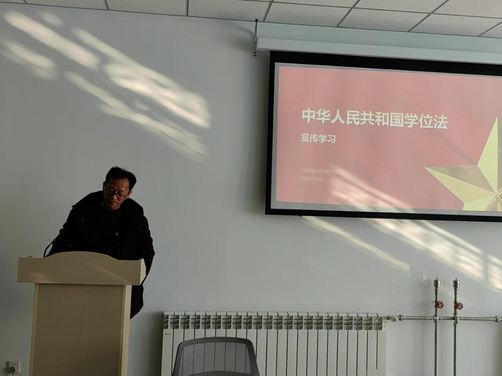 2024年12月24日下午,在软件大楼527会议室学院组织学习《中华人民共和国学位法》专题会议,会议由教学院长梁志剑老师主持,全体教师参会。