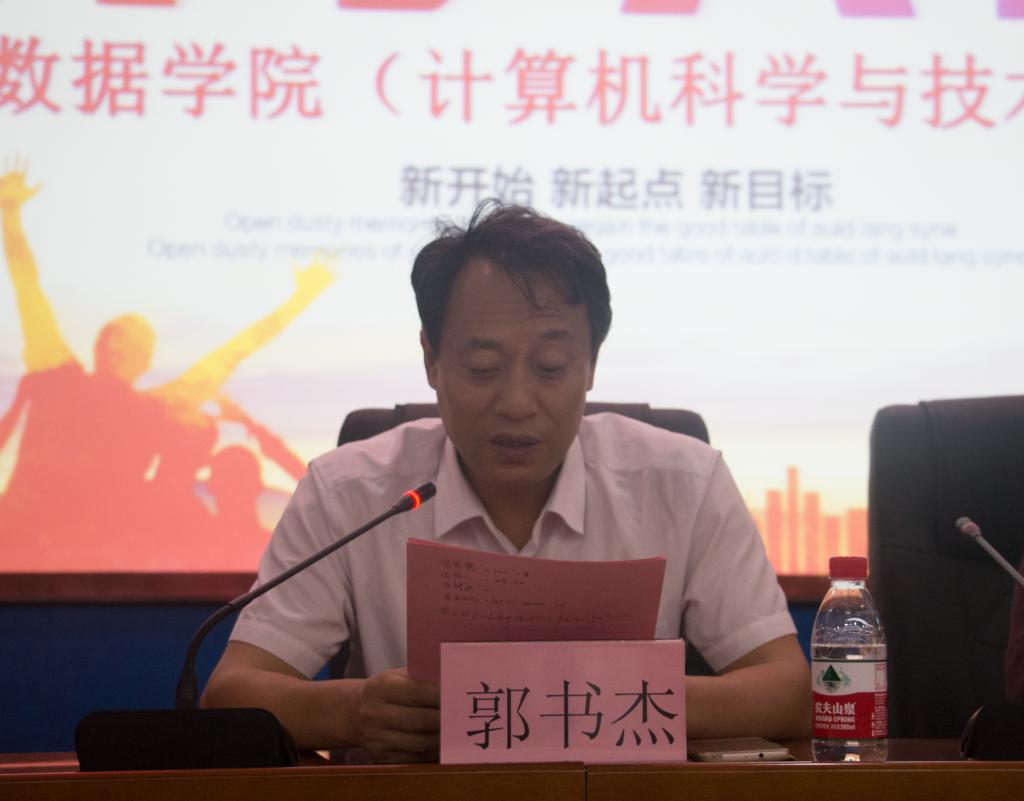 )2017级开学典礼在瑾瑜国际会议中心隆重举行。莅临本次典礼的领导嘉宾有院党委书记郭书杰,院长韩燮,院党委副书记杨晓东,副院长秦品乐,博士生导师宋礼鹏,数据与科学技术办公室副主任乔钢柱,校友代表韩建明、王坤及各新生班班主任与班主任助理。