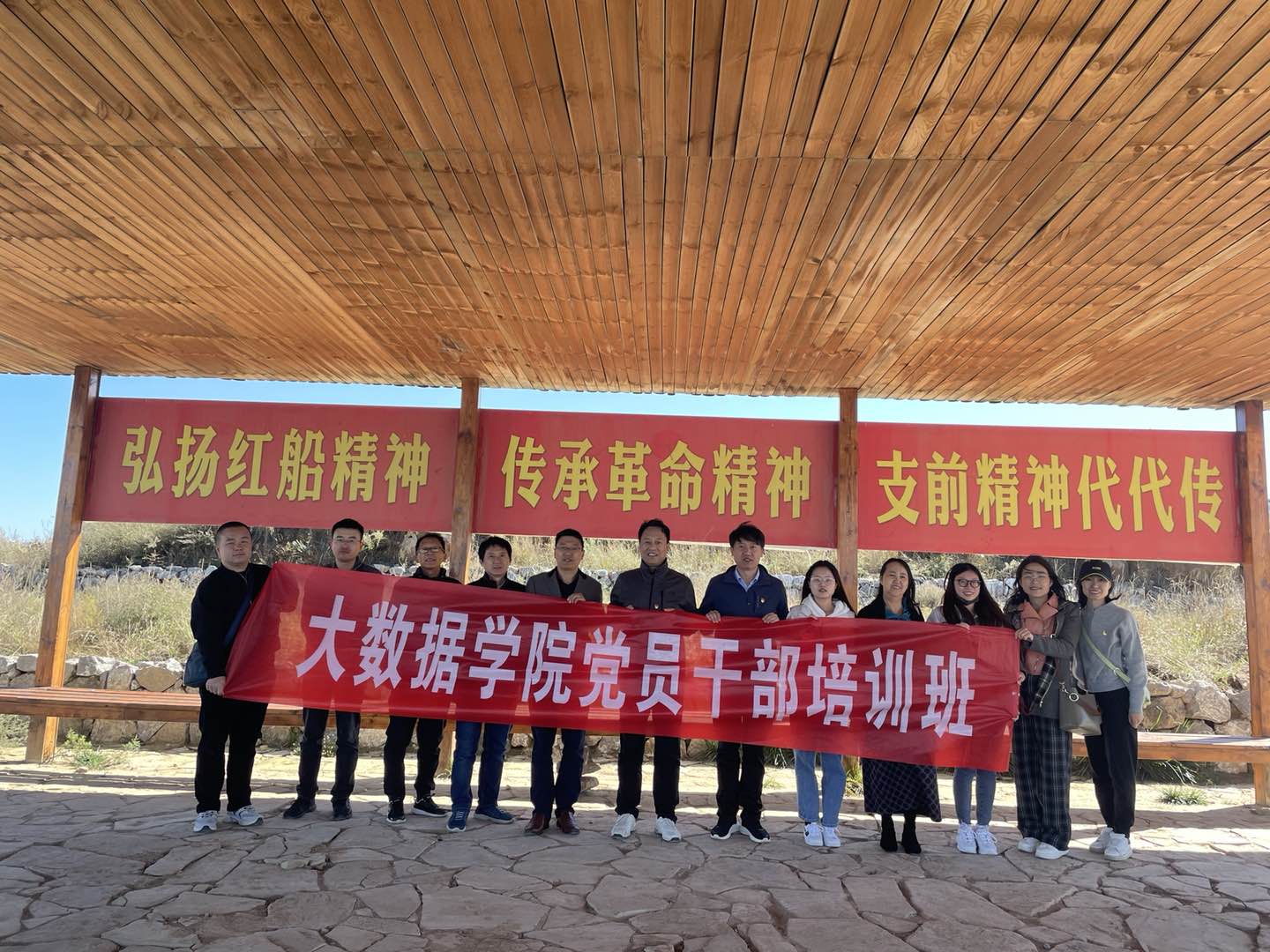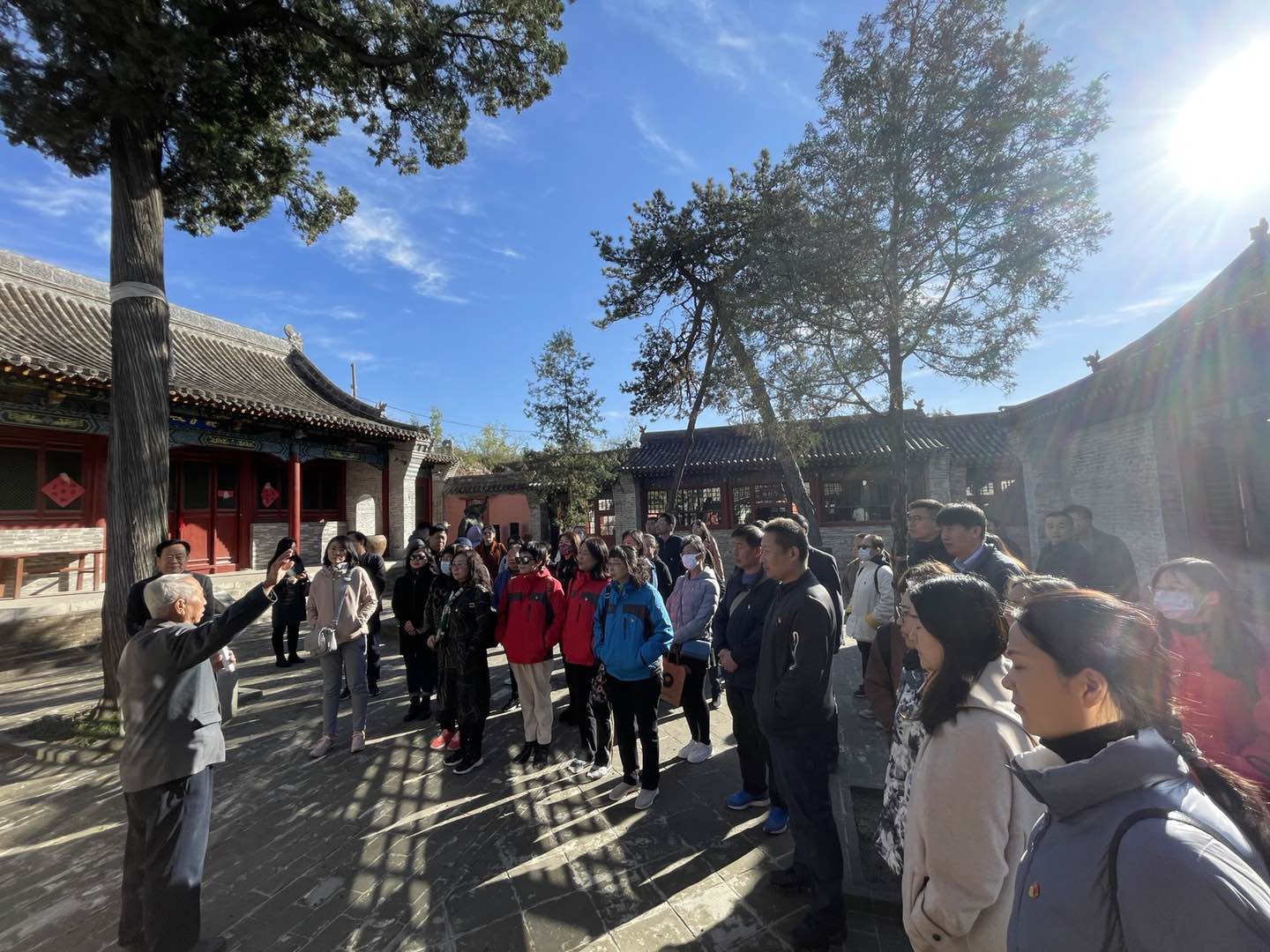 汽车停在一个古戏台前,顶着大山中寒意渐浓的凉风,党员干部们学习热情高涨,大家在小广场重温入党誓词,在支前纪念馆听满头银发的老支书用家乡话讲当年的抗战故事,看村民们在政府帮助下自己筹拍的微电影。“最后一碗米,用来做军粮;最后一尺布,用来做军装;最后一床棉被,盖在担架上;最后的亲骨肉,送他上战场!”当看到近90岁参军村民回乡寻找老支书,烽火岁月和如今孩子们脸上幸福的笑容画面对比时,大家热泪盈眶,被太原解放战争时支前村村民的奋斗与奉献精神和与中国解放军的军民鱼水情深深感动。