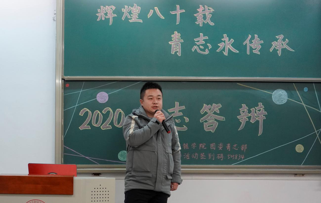 各青支队积极响应学院团委青志部号召,纷纷开展了形式丰富、组织形式多样的青年志愿活动。答在辩中各班级团支部青志队长对已展开的活动进行经验总结,并向同学们分享他们的心得与收获。大家围绕“辉煌八十载,青志永传承”的主题展开答辩,答辩形式丰富多彩,答辩内容更是风趣幽默,给同学们和评委老师们留下了深刻的印象。经久不息的掌声,便是同学们对各班开展青志活动的充分肯定。