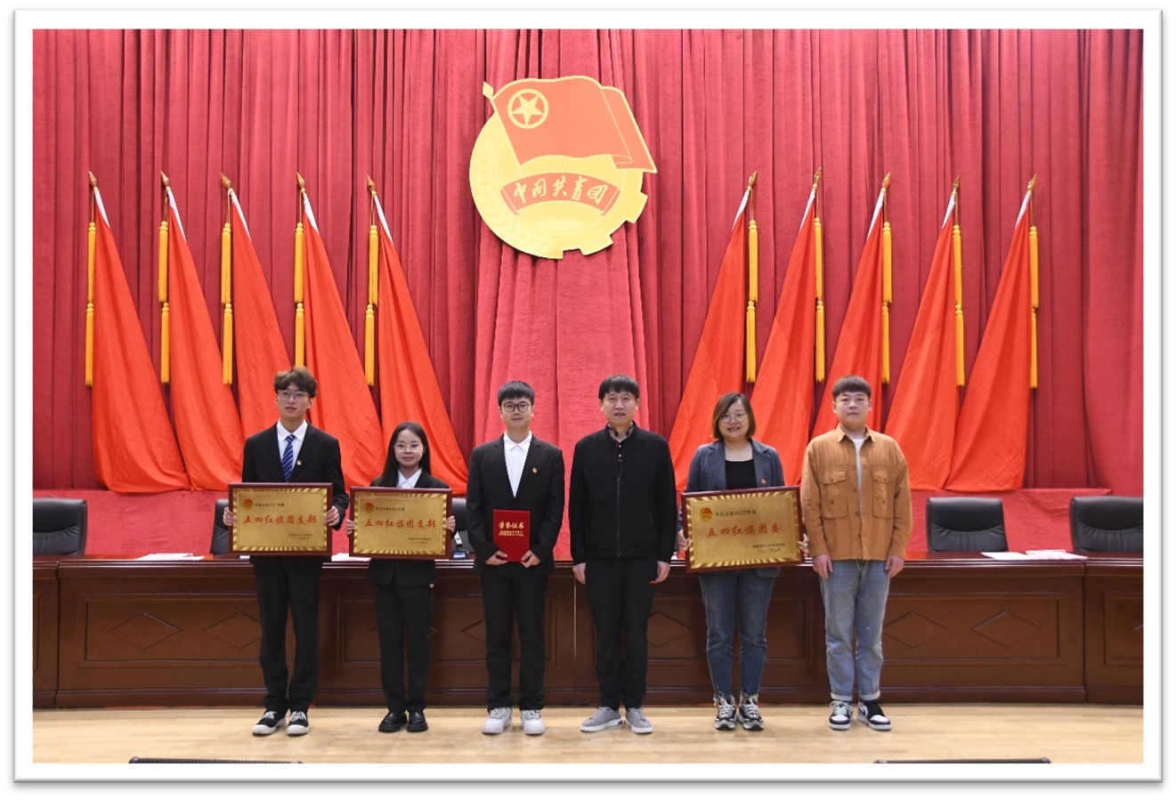 在个人荣誉方面,刘宇航同学获得了“校园十大青年人物”荣誉称号;任铭铭、江海婷两位同学获得了“优秀共青团干部标兵”荣誉称号;米嘉、尚玉洁、秦昇、乔哲瑞共四名同学获得了“优秀共青团员标兵”荣誉称号;张婉月、曲英杰、王振华、赵鑫茹等15人获得了“优秀共青团干部”荣誉称号;包永昌、张松涛、范悦、董文涵等31人获得了“优秀共青团员”的荣誉称号。
